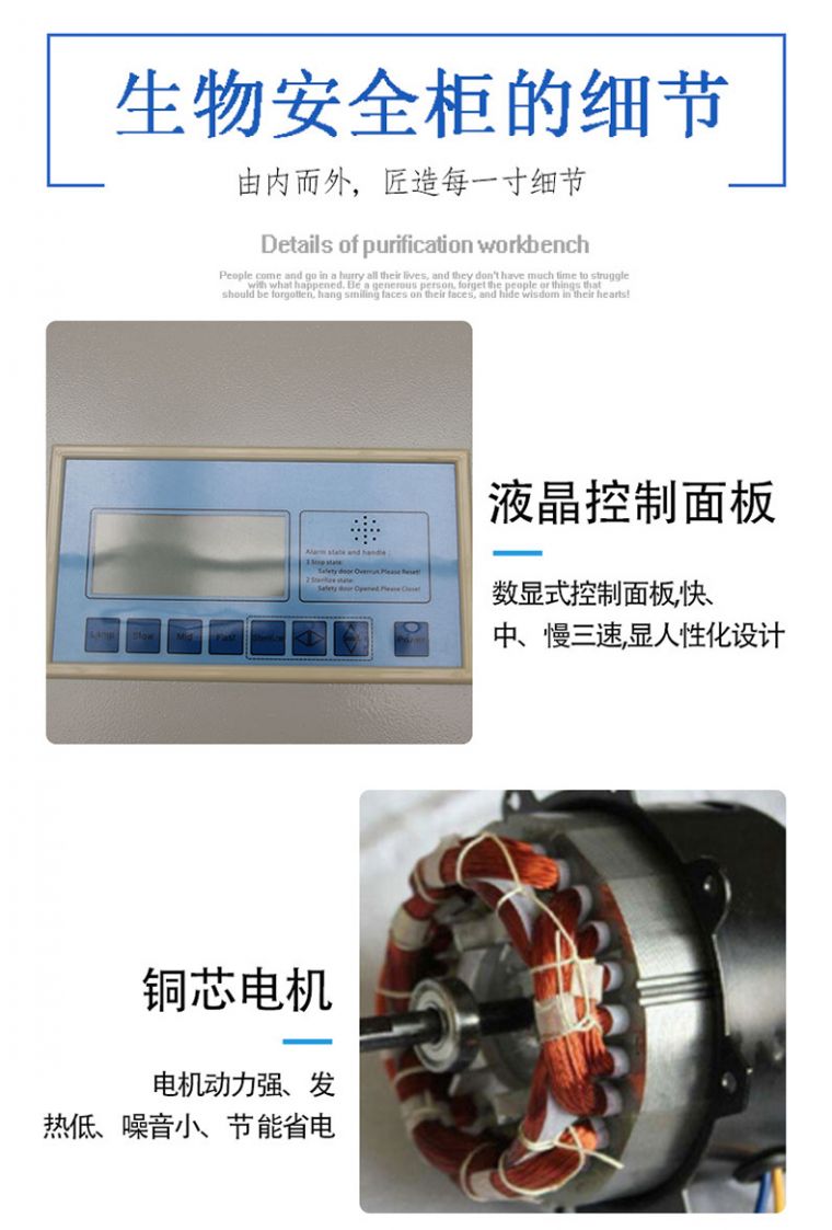 2 、上下移动玻璃门,可任意定位,易于操作,并能完全关闭以便杀菌,定位高度限位报警提示。