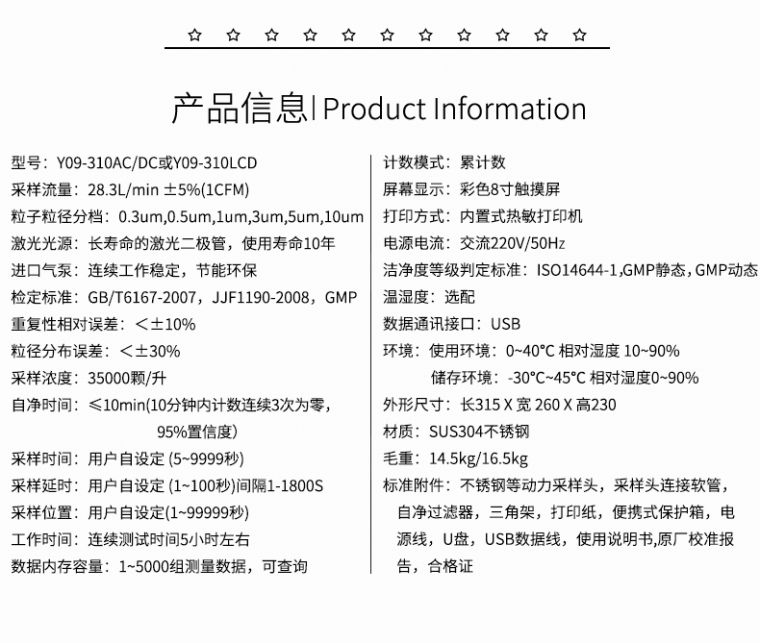 型号 | Y09-310 LCD型激光尘埃粒子计数器 |
