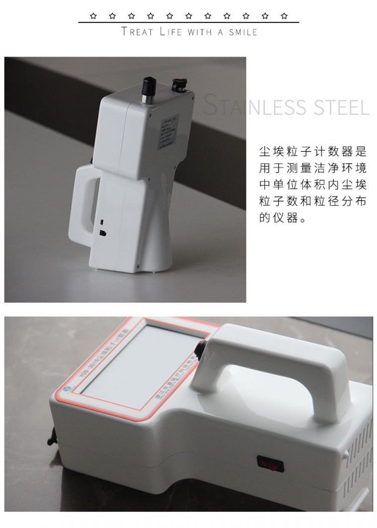 该产品是由本厂采样日本进口激光装置开发新一代高端尘埃粒子计数器。控制方式由老式的按键式控制升级为触摸屏控制,4.3寸彩色液晶触摸屏(显示比例16:9),超大的视觉界面使得操作更为简便直观。产品采用气泵,噪声更低,电磁干扰更小;供电采用大容量锂电池与直流电源适配器转换供电,外形设计大气简洁,体积小,重量轻,使用方便,ABS工程塑料外壳更能符合GMP的要求,是目前药厂进军国际市场的选择,也是过滤器厂家检测的必要手段。