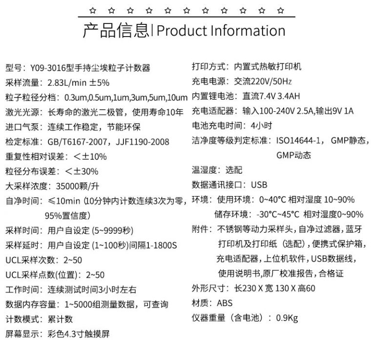 型号 | Y09-3016型手持尘埃粒子计数器 |