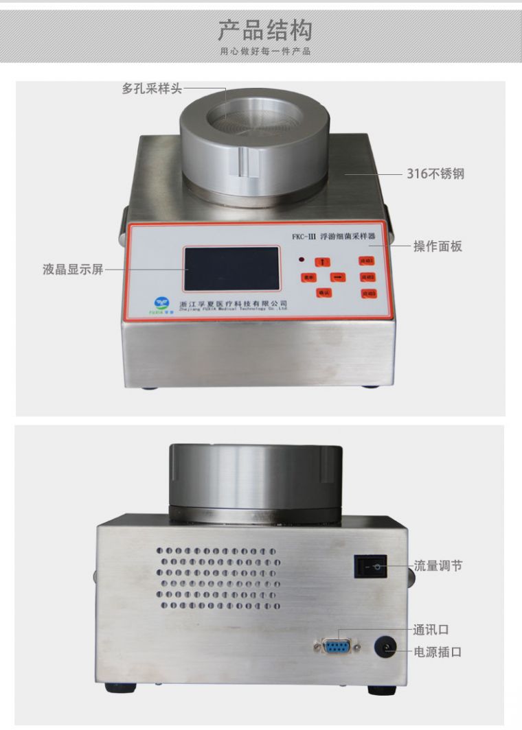 1.采集口为397目,直径φ0.7mm微孔,减少了尘菌重叠,降低了微计数错误。