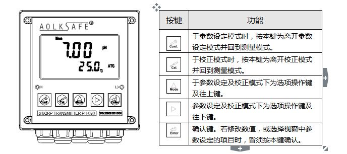 电流输出一 | 隔离式4~20mA对应pH/ORP量测范围(不可编程),最大负载500W | ||