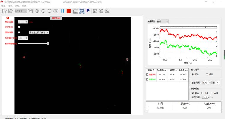 RSM-FBN(A)大型设施挠度非接触测量仪测量软件是集数据采集与分析于一体的程序,此程序在编程上面强调了操作跟灵活、界面友好。在功能上给了用户更大的灵活性,主要体现在如下几个方面: 1、数据处理与分析:滤波功能完善,可对采集的曲线进行前处理和后处理;功能强大,冲击系数、阻尼比、频谱分析一应俱全;图像可先录后进行处理和分析,方便快捷; 2、界面友好:图像、数据、曲线显示于一体,方便直观; 3、丰富的参数设置:灵活机动的参数设置,可修改工程名称、测点号、检测单位等。