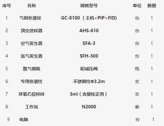 医疗器械环氧乙烷监测仪器配置表