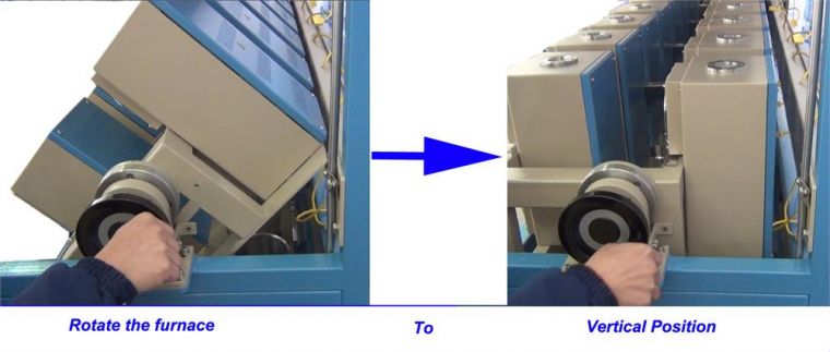 主要特点 | 管式炉共有16个通道,其炉管尺寸25 OD x 20 ID x 200 L mm 每个加热模块都有独立的温控系统控制,最高温度可加热到1100℃ KF25的快接法兰安装在每根石英管上,可使样品在真空或气氛保护环境下进行热处理 加热模块有两种工作位置,水平位置用于样品烧结,垂直位置用于样品淬火。炉体可以由水平位置旋转到垂直位置,可以用于金属样品浇注等实验