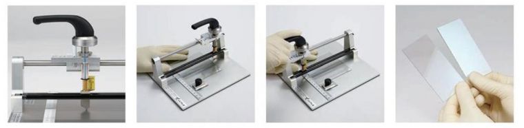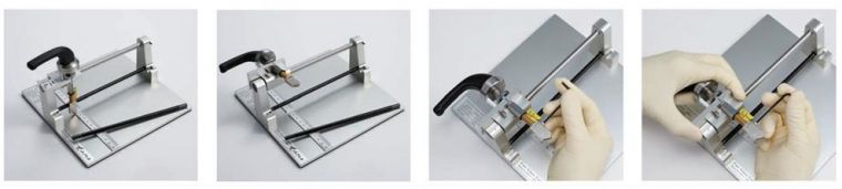 1、调整金刚石划片的高度 2、调整弹簧的压力 3、放置样品进行切割