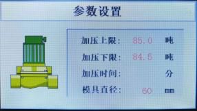 技术参数 | 1、电动压力机压力范围:0-110T 2、电源:220V 50Hz 3、功率:1.5KW 4、保压时间:0-999分钟 5、压力范围:0-110T 6、活塞直径:镀铬油缸φ200mm(d) 7、压力表:显示屏 8、最大活塞行程:50mm(T) 9、补压方式:自动补压 10、防护罩:有机玻璃 11、模具内腔:φ50*120mm(总高350时) 12、模具承压:500MPa | |