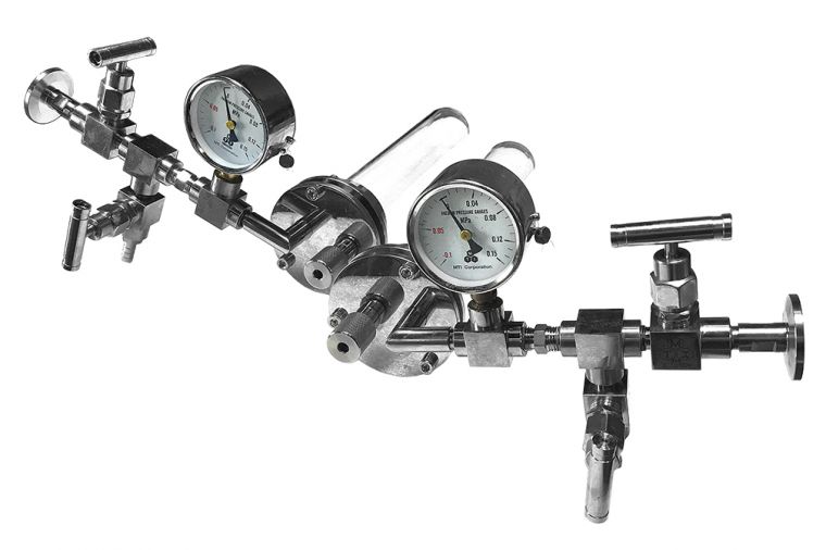 6.真空密封法兰 2个不锈钢密封法兰,上面安装了机械压力表和KF25接口 法兰上有1/4英寸的铠装孔,用于将热电偶插入到炉管内部,用于检测炉管内样品的实际温度 炉管内部真空度:10E-3Torr(采用机械泵),10-5Torr(采用分子泵)