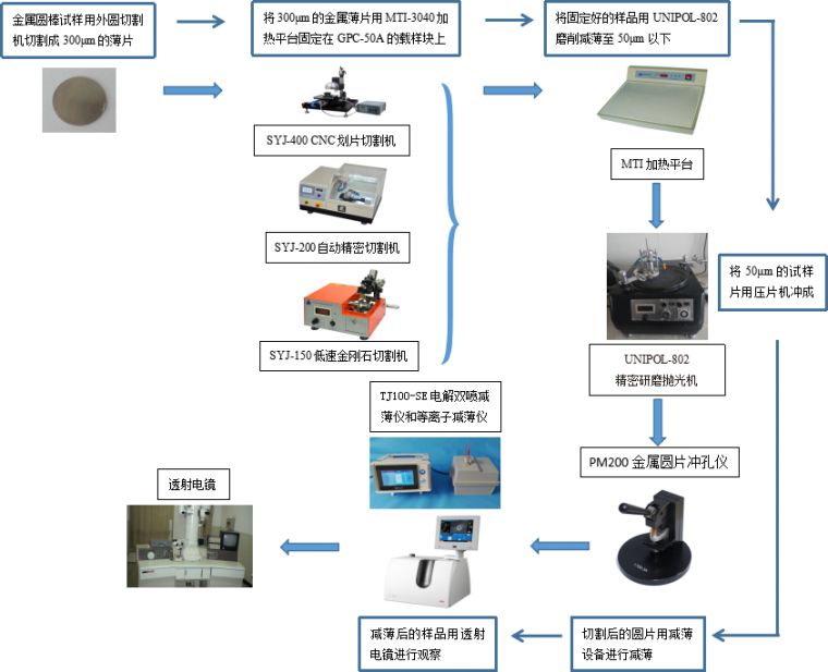 ⑴ 样品的切割:首先用我司制造的SYJ-400或SYJ-200将试样切割成厚度为300μm金属薄片。