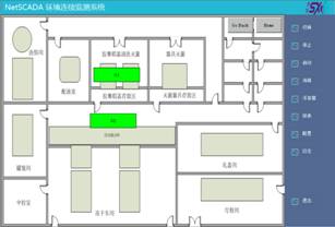 软件可以产生特制的设备分布图,用于标明配置到系统中的各个监测仪器的位置。页面还显示操作人员选定的采样点的状态参数和当前监测数值,并实时更新这些数据。在NETscada软件采集数据的同时,操作人员可以增加或更换监测仪器。软件还可以产生多个设备分布图,以显示生产设施中特定地点的放大情况。
