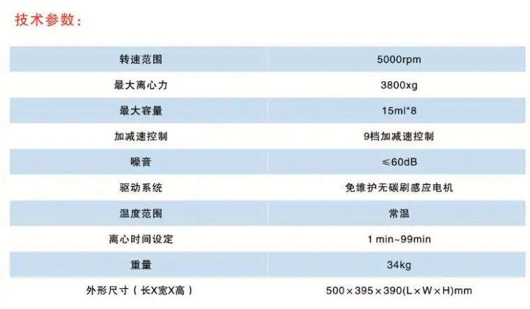 | 1 | 水平式 | 15ml/10ml*8 | 5000r/min | 3800xg |