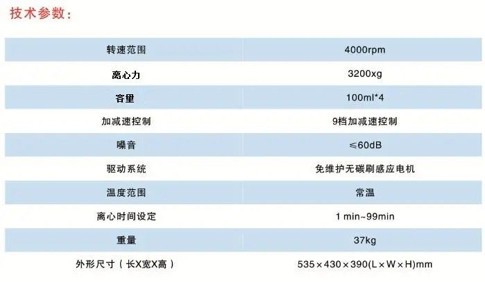 | 1 | 水平式标配 | 100ml*4 | 4000r/min | 3200xg |