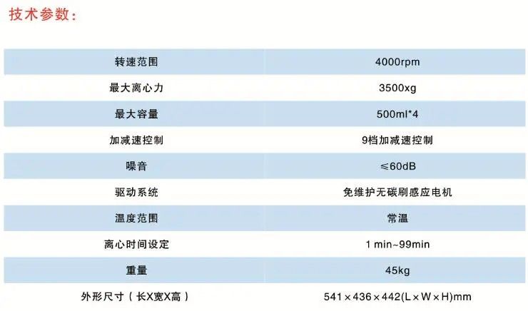 | 1 | 水平式 | 500ml*4 | 4000r/min | 3500xg |