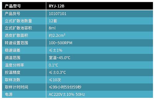 RYJ—12B药物透皮扩散试验仪,是我公司与药物制剂国家工程研究中心联合研制、开发的产品。 该仪器使用垂直式的Franz扩散池,在恒温水浴容器内,磁力均匀搅拌的工作状态下,通过动物皮缓慢渗透,客观地再现了该制剂在规定的溶剂中渗透的速度和程度的药理过程,是目前国际通行的检测方法之一。