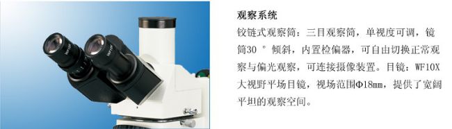 ▲ 三目镜筒,可自由切换正常观察与偏光观察,可进行100%透光摄影。