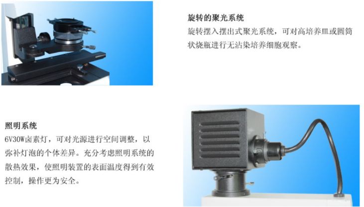 聚光镜升降可调, NA.=0.4,工作距离:50mm | |