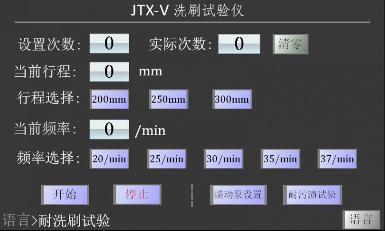 6、默认界面是耐洗刷界面,设置试验次数,选择试验行程、试验频率。