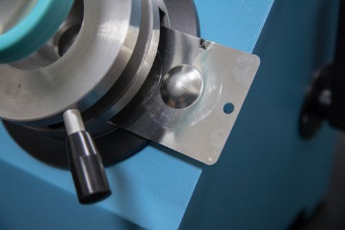 2、操作台上方的转盘用于压紧试板,试板从侧面放入。