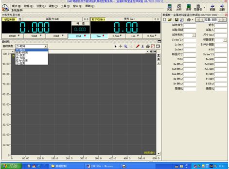n)曲线选择:可根据需要选择应力-应变、力-位移、力-时间、位移-时间等曲线进行显示和打印;