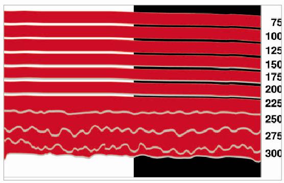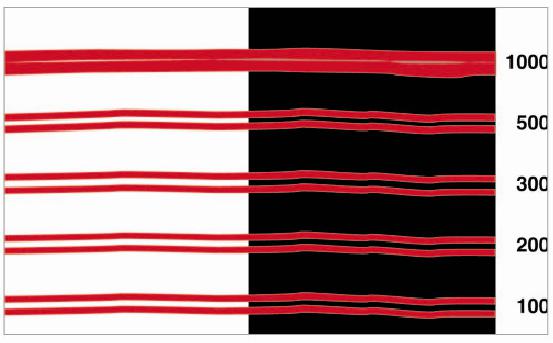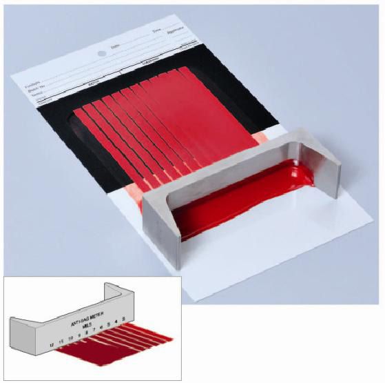 4、待涂膜表面干后,观察其流挂情况,若该条厚度涂膜不流到下一个厚度膜内时,即为该厚度涂膜不流挂。