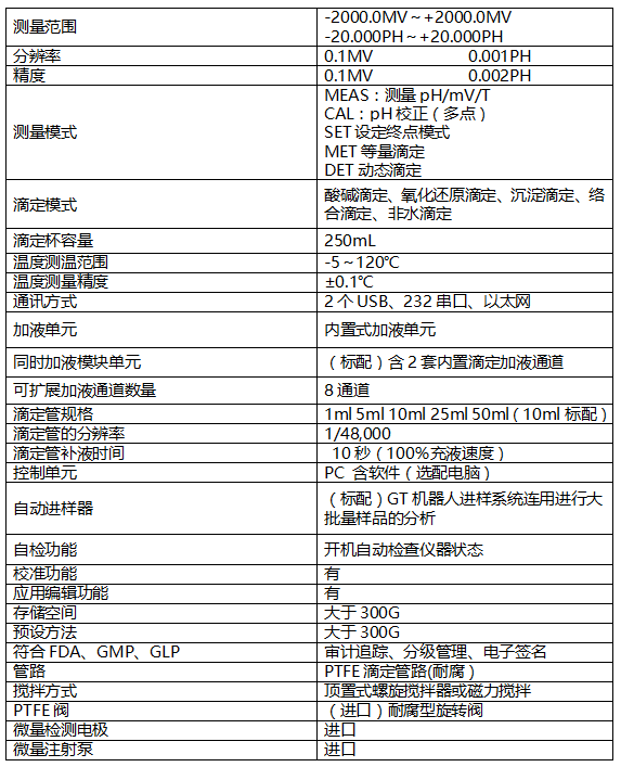支持酸碱滴定、氧化还原滴定、沉淀滴定、络合滴定、非水滴定等多种滴定方法