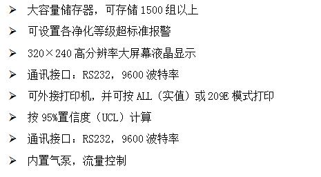 CLJ系列的手持式激光尘埃粒子计数器是用于检测无尘室车间空气洁净度级别的计量仪器。符合计量局颁布的JJF1190-2008《尘埃粒子计数器校准规范》规程的技术要求,整机功能采用微电脑控制处理,可直接打印检测结果。