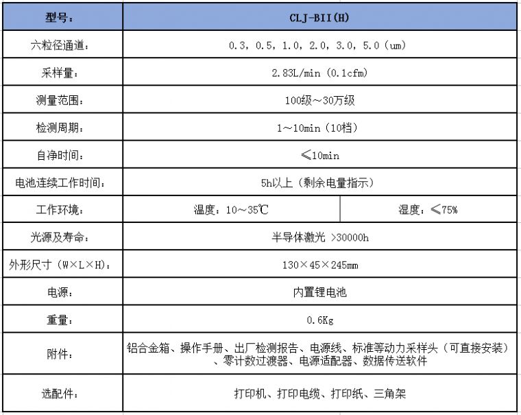 CLJ-BII(H) 手持式激光尘埃粒子计数器用于检测无尘室车间空气洁净度级别的计量仪器。CLJ-BII(H) 手持式激光尘埃粒子计数器应用广泛,品质在线!