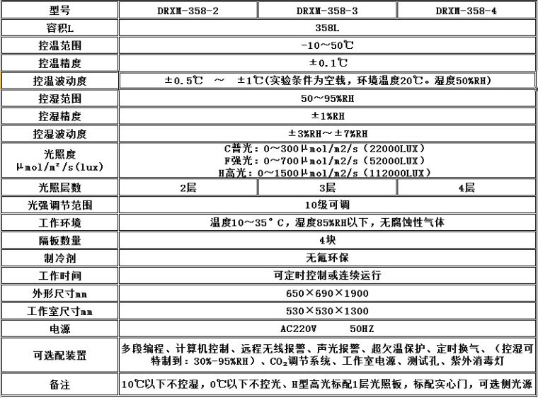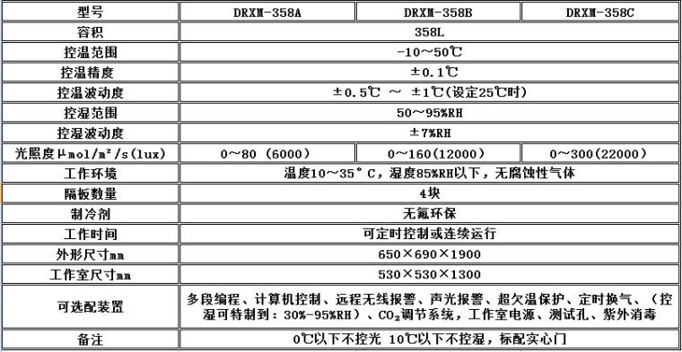 一.顶光源人工气候箱参数: