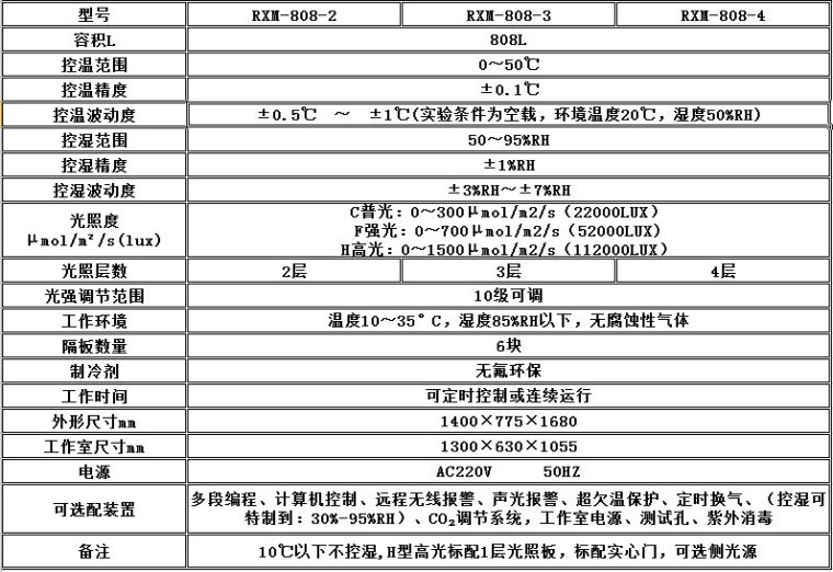 一.顶光源人工气候箱参数: