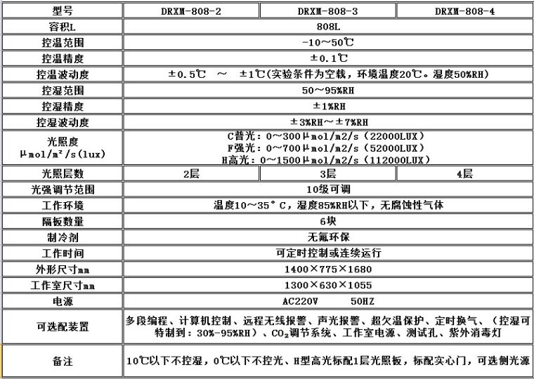 一.顶光源人工气候箱参数: