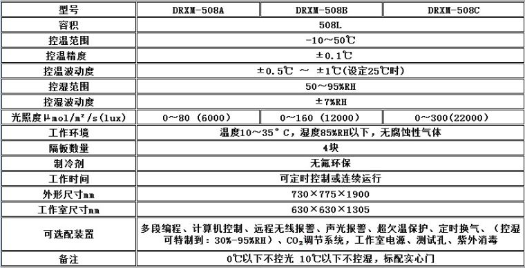 适用于植物的生长和组织培养,种子发芽、育苗、微生物的培养试验;昆虫小动物的饲养;水质监测的BOD测定;药材、木材、建材的老化及使用寿命测试等,以及其他用途的光照,恒温、恒湿的专用试验设备。适用于生命科学、细胞微生物、分子基因遗传等研究;是生物工程、医学、农学、水产、畜牧等众多领域从事科研及生产常用的理想辅助设备,提供了精准的恒温恒湿及模拟光照的实验条件。