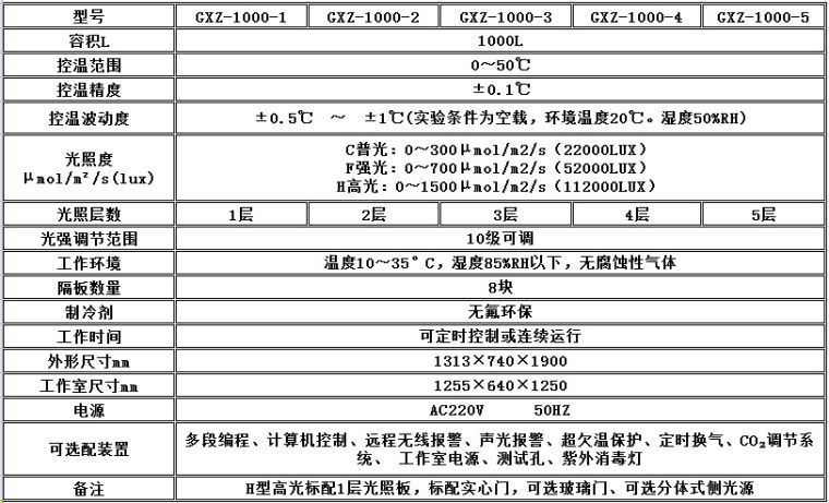 一、顶光源光照培养箱主要技术参数: