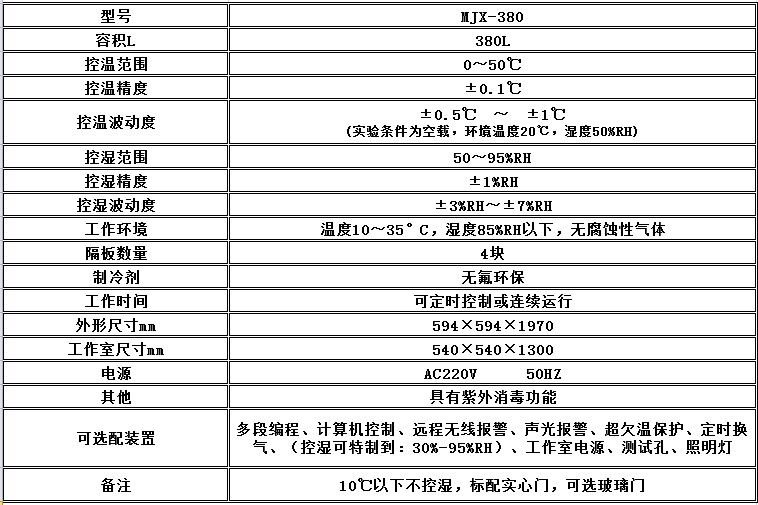 霉菌培养箱 MJX-380具有恒温恒湿和消毒三大基本功能。常用于培养微生物与菌类植物,(在密闭的空间内设置相应的温度、湿度,使霉菌在4-6小时左右长出来,是人工加速霉菌繁殖研究的常用设备之一);也广泛应用于大专院校和医药、**、电子、化工、生物等科研部门作储藏菌种、生物培养等;适用于考核电工电子产品的抗霉能力和发霉程度,测试和判断其在湿热温度环境变化后的性能及各项参数指标;是人工三防气候中的一种重要的检测手段。
