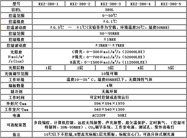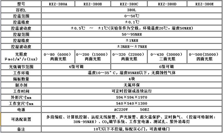 一、顶光源人工气候箱主要技术参数:
