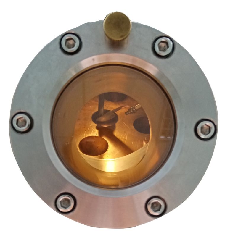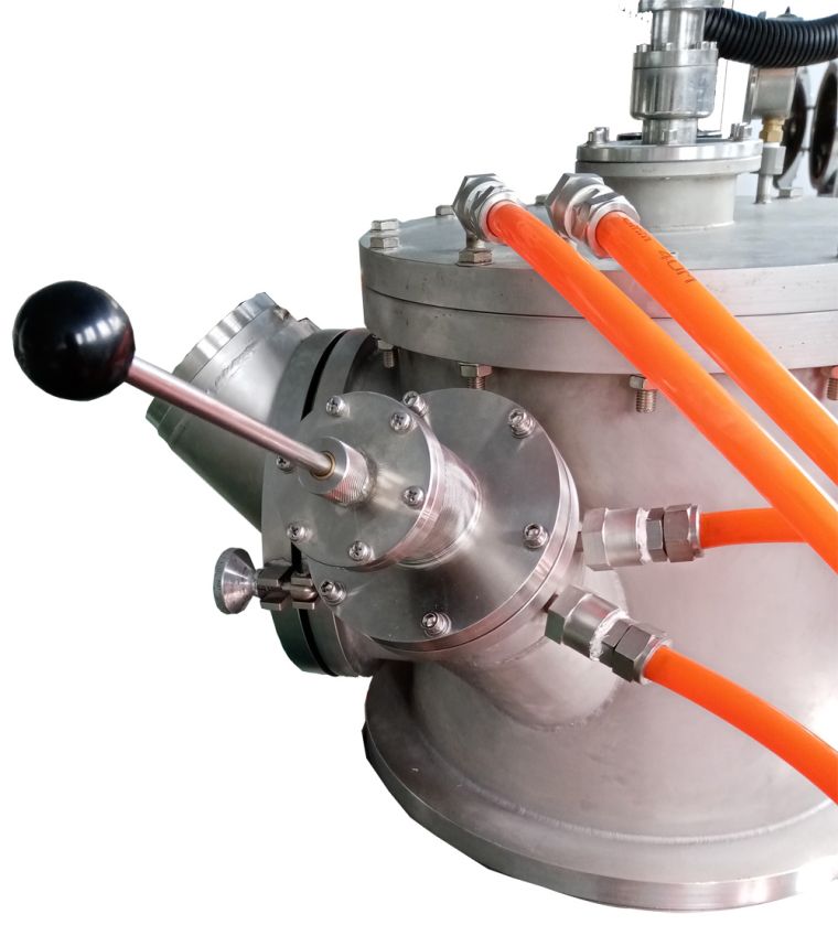 | 真空腔室 | 水冷真空腔室的尺寸是Dia182X225 真空腔室上有一个直径是120mm的门,便于送样和取样 炉门上有一个直径是60mm的观察窗,方便观测起弧熔化状态 腔体右侧安装机械手,方便翻转合金锭 | ||