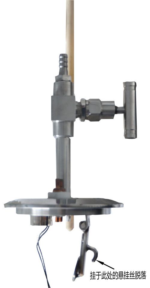 8.样品是通过耐高温丝固定悬挂在法兰底部的悬挂钩上。(备注:我公司随设备标配的丝的最高使用温度为1200度,如果客户的使用温度为1200度以上,可以选购我公司专门的耐高温丝,详询我公司销售)