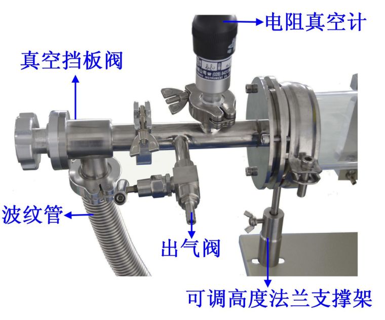 铰链式法兰(选购) 可以接电阻真空计和KF25波纹管的法兰(选购) 水冷法兰(选购)