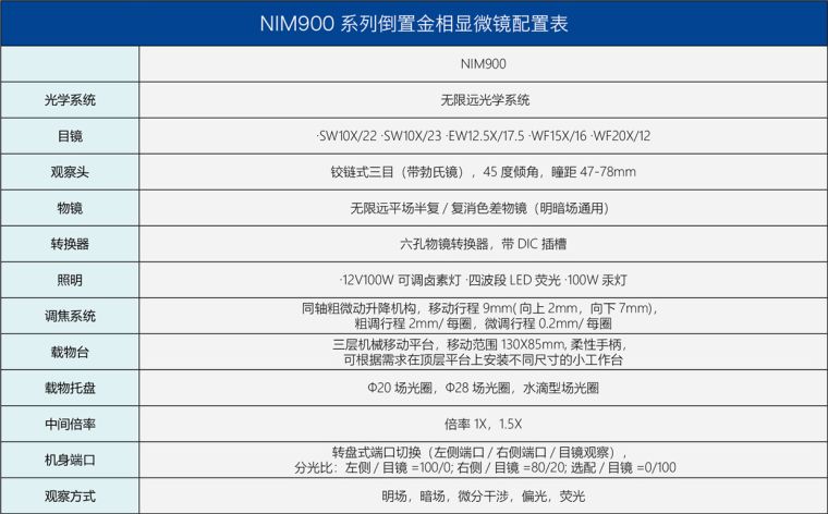 • NIM900倒置金相显微镜成像质量好,检查速度快;人性化设计,使用舒适;具有优秀的图像分析系统。