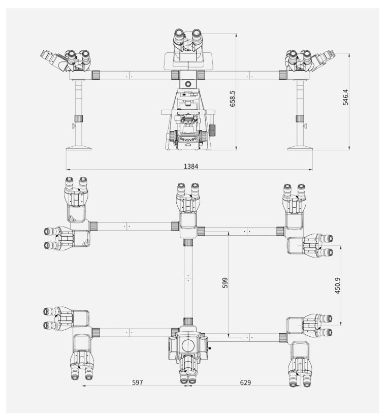 共览系列附件能够进行2-10人的扩充。同时能保证显微图像不失真,图像亮度不损失。