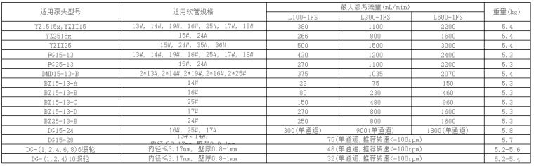 多种泵头软管选择,提供宽泛的流量范围
