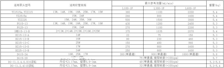 多种泵头软管选择,提供宽泛的流量范围