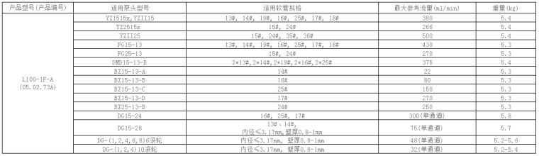 多种泵头软管选择,提供宽泛的流量范围