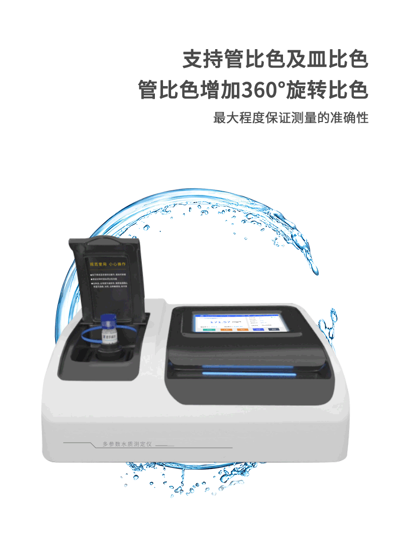 2、支持10mm、30mm皿比色和φ16mm管比色三种比色方式,同时管比色增加360°旋转管比色,确保测量的准确性;