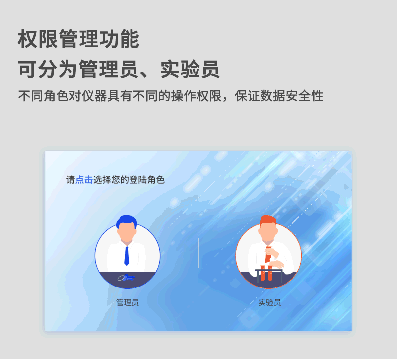 7、仪器增加权限管理功能,用户角色可分为管理员和操作员两种角色,不同角色对仪器具有不同的操作权限,方便用户日常管理仪器,并保证数据的安全性;