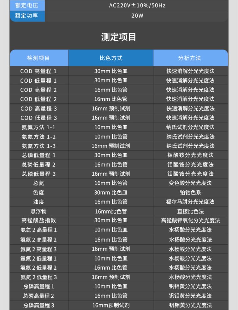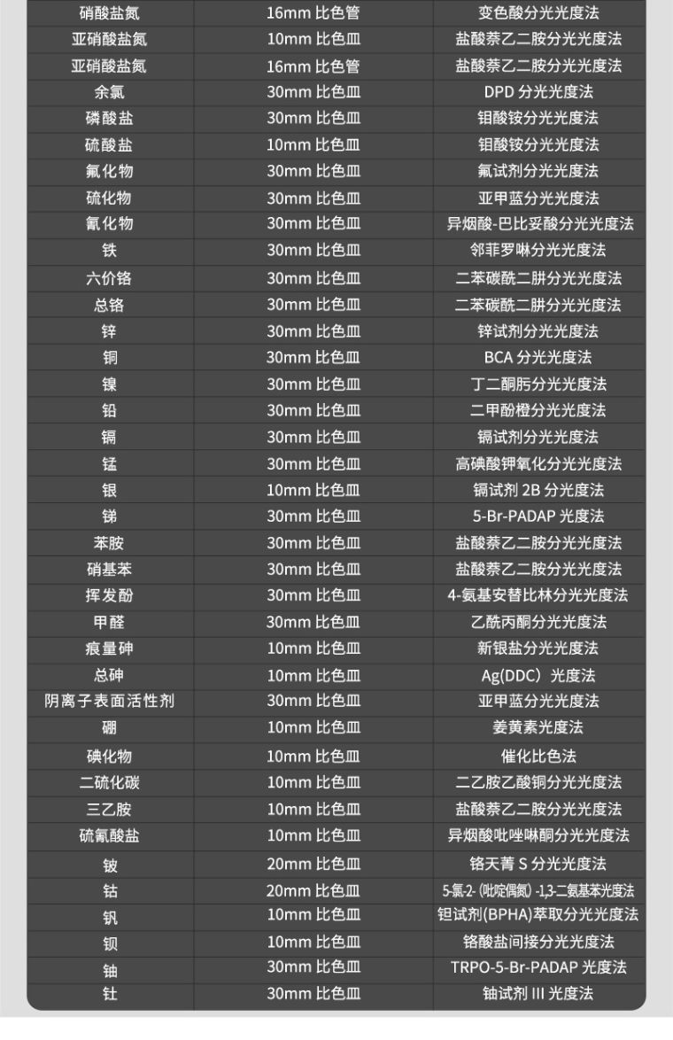 2.5比色方式:30mm比色皿、10mm比色皿、16mm旋转管比色。