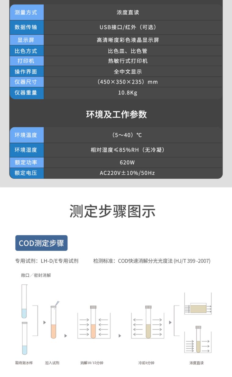 2、设计上完全依据国家《快速消解分光光度法(HJ/T399-2007)》原理设计制造,符合