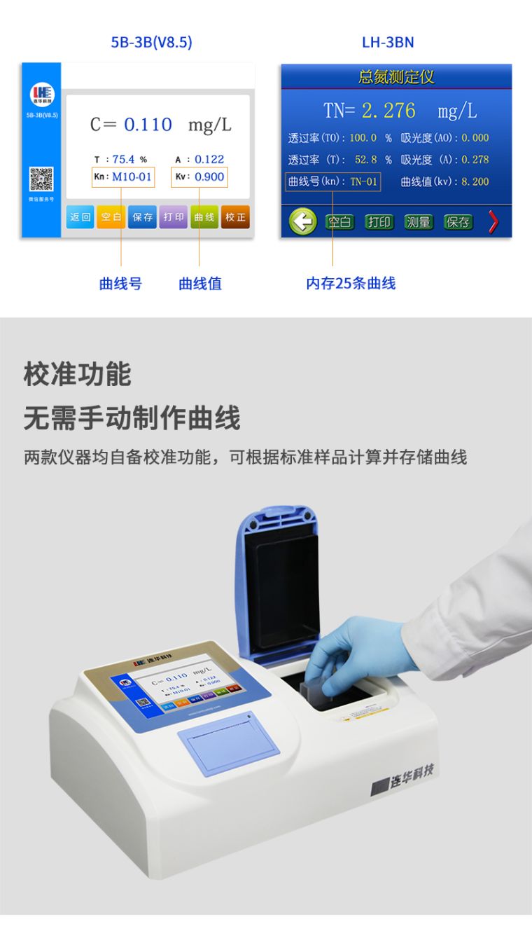 7、校准功能:两款仪器均自备校准功能,可根据标准样品计算并存储曲线,无需手动制作曲线;