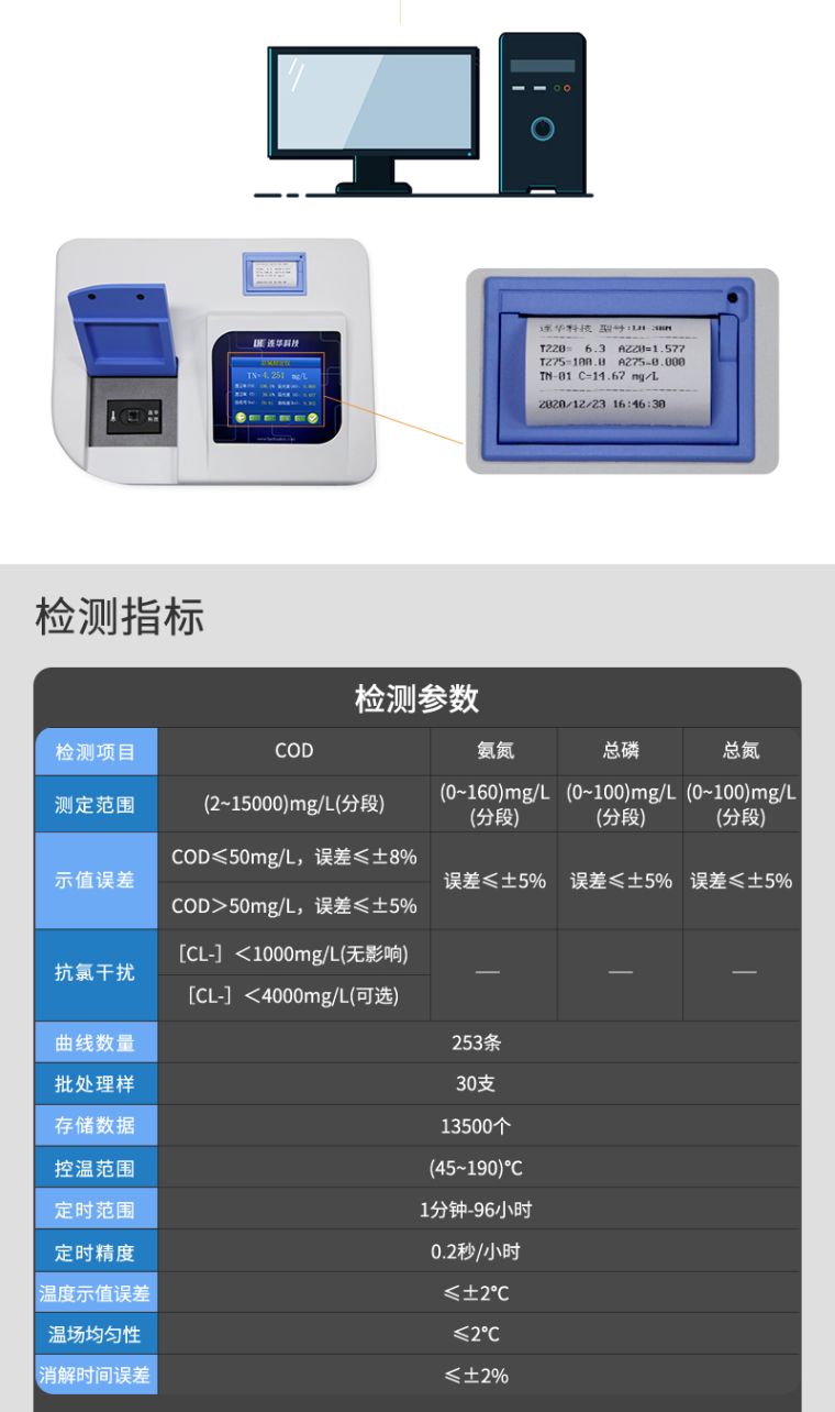 2、标配消解仪:标配30孔双温区消解仪,可同时消解两种指标不同温度水样,并可满足用户大批次样品检测的需求,节省时间;