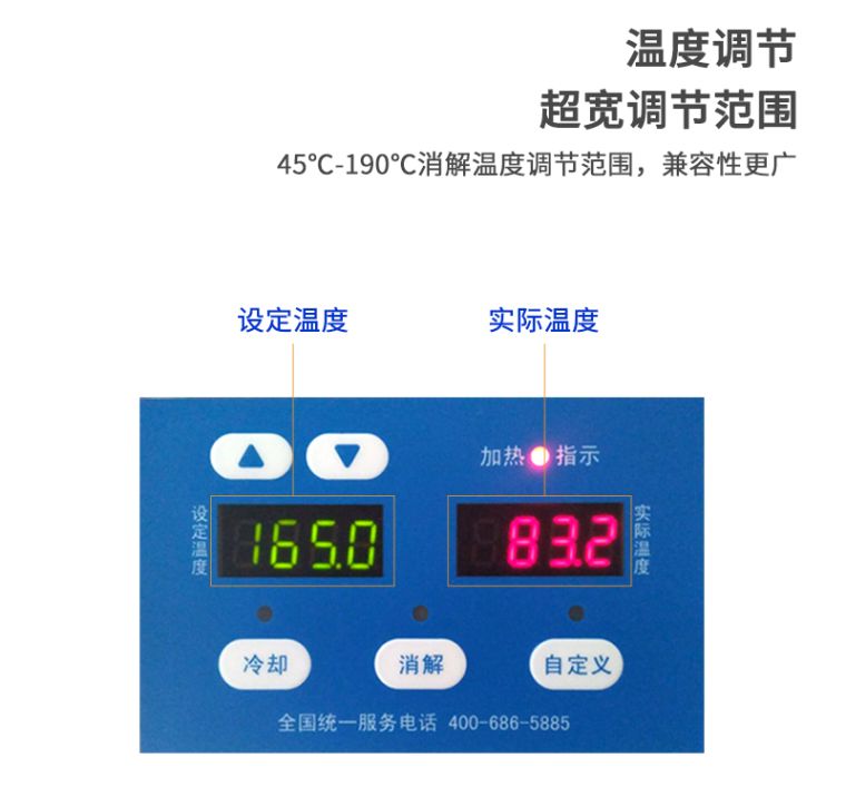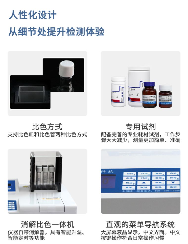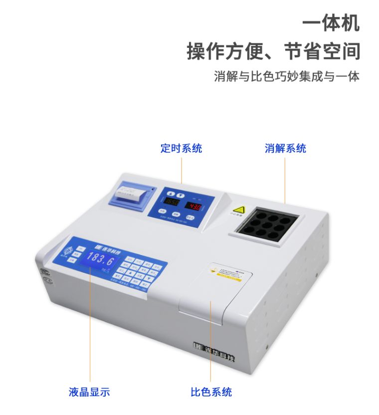 1、消解器与比色主机巧妙集成于一体,操作方便,节省空间;