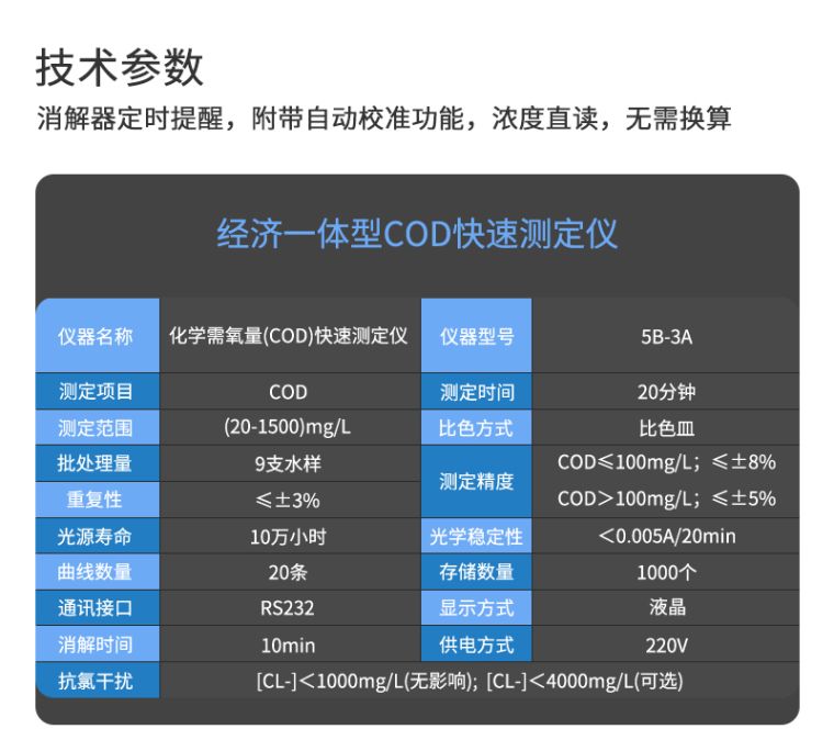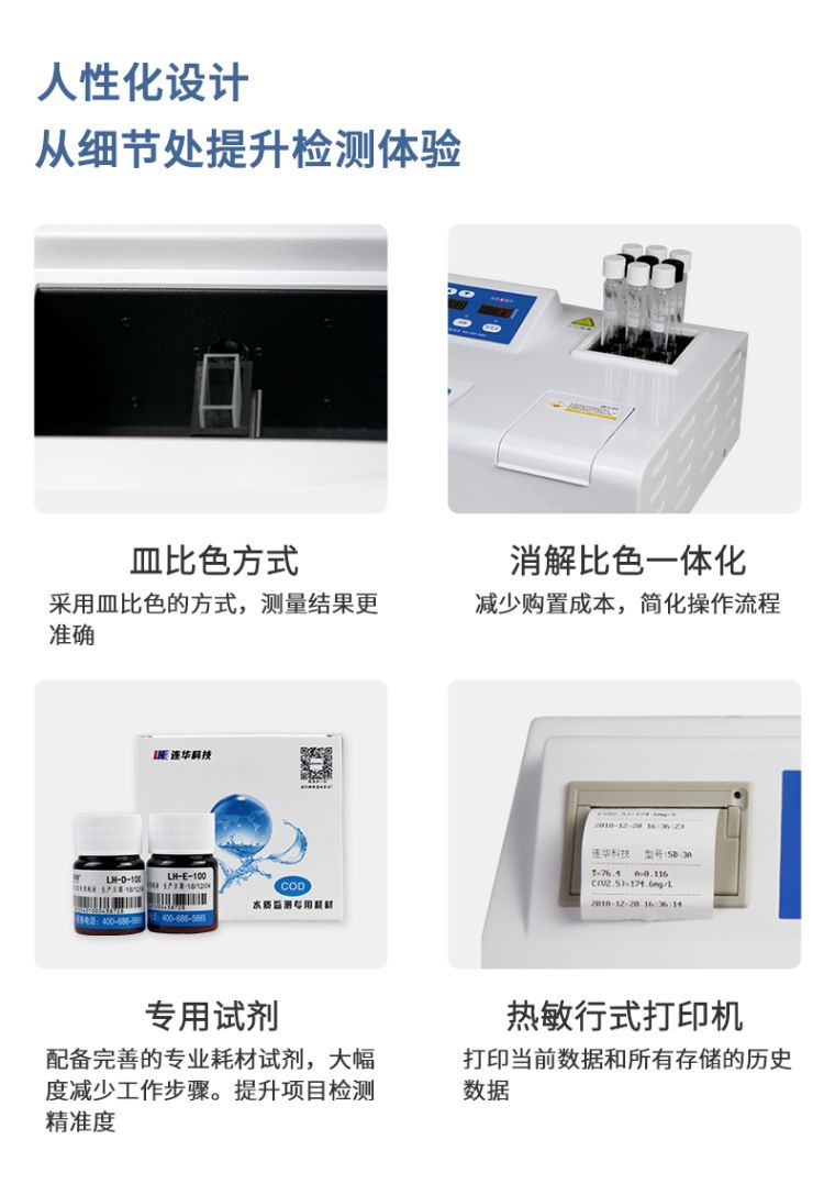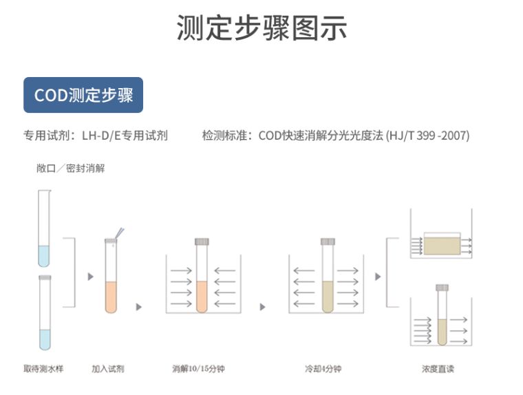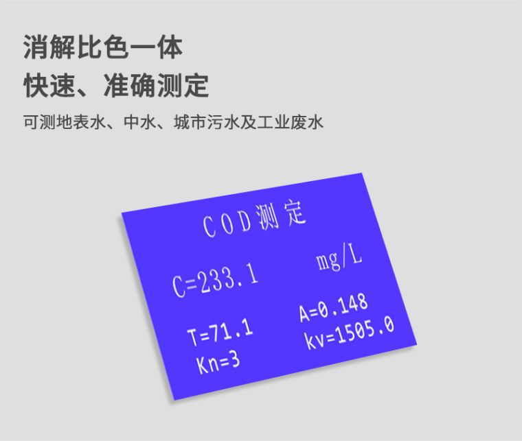 1、能准确测定地表水、中水、城市污水和工业废水的化学需氧量(COD);